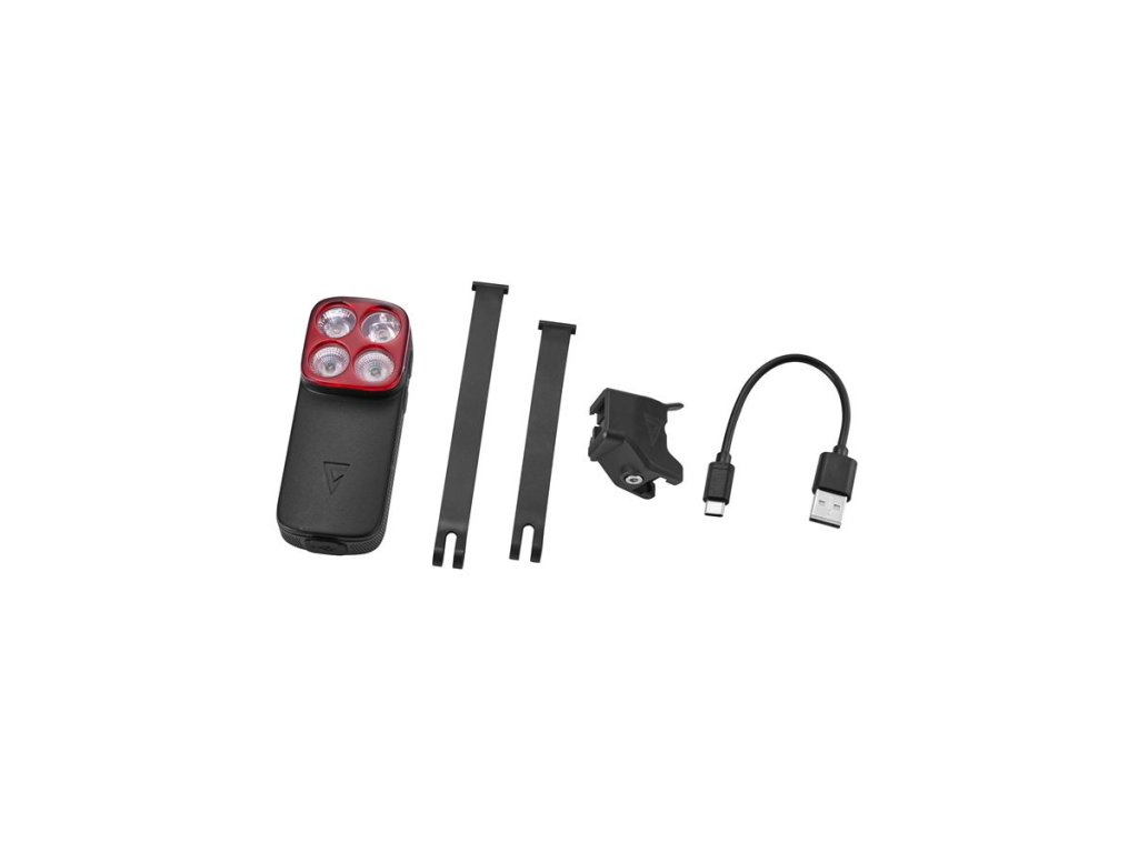 součástí balení je držák na sedlovku a nabíjecí kabel USB-C