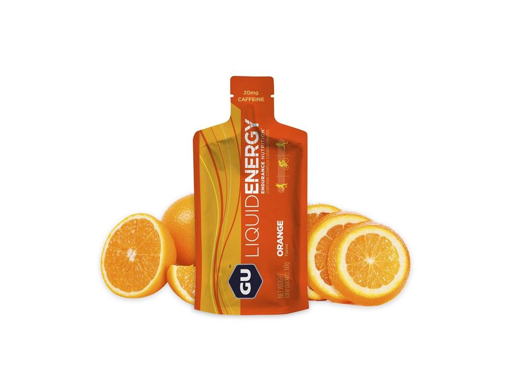 Liquid Energy Gel vychází z osvědčeného Energy Gelu, obsahuje ale navíc 30 ml vody, aby jeho konzumace byla jednodušší, rychlejší a pohodlnější. GU Liquid Energy Gel poskytuje sportovcům všech sportů a všech výkonnostních úrovní 100 kalorií vysoce kvalitní, snadno stravitelné a dlouhotrvající energie. Gel obsahuje maltodextrin a fruktózu, aby poskytl svalům účinnou energii a zároveň zmenšil žaludeční potíže. Každý sáček Liquid Energy Gel nabízí vyváženou směs sacharidů a aminokyselin. Neobsahuje zbytečná množství vitamínů, umělých příchutí a dalších přísad, které nejsou potřebné pro zásobování organismu sportovce během sportu. GU Liquid Gel má praktické balení, je snadné ho během závodu sníst, nemusíte ho zapíjet, dobře chutná a poskytuje přesně to, co potřebujete pro maximální výkon! Veganské. Košer výrobek. Neobsahuje lepek. Neexistuje nic osvěžujícího během horkého dne než šťavnatý pomeranč, takže vyrobit pomerančovou příchuť Liquid gelu byla jasná volba! Dejte si jeden doušek a ucítíte sladkou a štiplavou dávku pomerančové chuti, která vás potěší stejně jako sklenice džusu z čerstvě vymačkaného pomeranče. Ale nebojte se, náš gel je bez dužiny :)