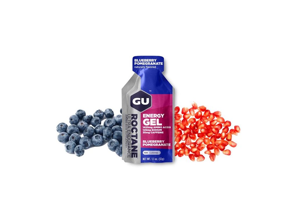 Jedinečný zdroj potřebných živin a energie pro dlouhé vzdálenosti a extrémní výkony, zejména v závodech. V pouhých 100 kaloriích je obsaženo 1 425 mg větvených aminokyselin leucin, valin a isoleucin. Ve srovnání s GU gelem obsahuje mnohem více esenciálních aminokyselin, které si tělo samo nedokáže syntetizovat, ale potřebuje je k ochraně svalových vláken při fyzickém výknu. Ornithine alpha-ketaglutarat (OKG) blokuje nežádoucí katabolické procesy (svalové křeče). Obsah 35 mg kofeinu stimuluje nervovou soustavu k lepší koncentraci. Stejné použití jako GU gel, ale s mnohem vyšším účinkem, který vás rychleji dovede dál. Energetický gel ROCTANE obsahuje 3x více BCAA a 2x víc elektrolytů ve srovnání s našimi původními energetickými gely. Obsahují také aminokyseliny taurin (pomáhají udržovat stažitelnost srdce a zlepšují srdeční výdej během dlouhých cvičení) a beta-alanin (pomáhá udržovat stabilní ph uvnitř buněk a tím zabránit jejich poškození). Energetické gely ROCTANE dodávají stejnou kombinaci sacharidů a stejný počet kalori jako Enery Gely. Energetické gely ROCTANE jsou klíčovým nástrojem pro vysokou intenzitu nebo dlouhodobou aktivitu, kdy dochází k rychlému vyčerpání živin a poškození svalů. Gel Blueberry Pomegranate umně spojuje chuť dvou různých bobulí do jedné příjemné chuti. Věděli jste, že granátové jablko je také bobule? Tento gel zkráceně nazýváme Blue Pom a jeho chuť je sladká, květinová a šťavnatá. Chutná jako oblíbený džem a funguje skvěle i jako gel ROCTANE. Tato příchuť byla tak dobře přijata, že jsme udělali i energetické bonbóny Chews v této skvělé příchuti! NEOBSAHUJE LEPEK! OPTIMALIZOVANÝ ŘETĚZEC AMINOKYSELIN: Pro zvýšení výkonu, pozornosti a rychlosti regenerace, redukuje riziko svalových poškození a urychluje následnou regeneraci
