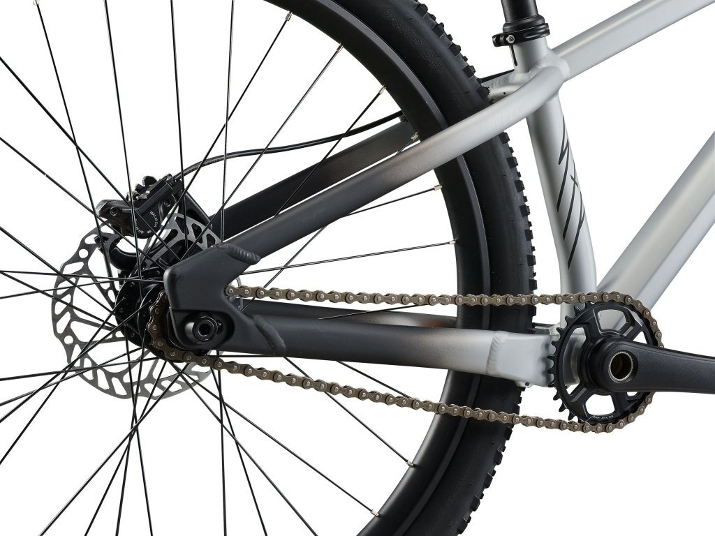 Horizontálně posuvná zadní patka 135x10 mm a vidlice Marzocchi Bomber DJ se 100mm zdvihem poskytují plynulé ovládání v náročném terénu, při skákání a dropech – což z něj činí všestrannou volbu jak při skákání nebo jízdě na technických trailech.