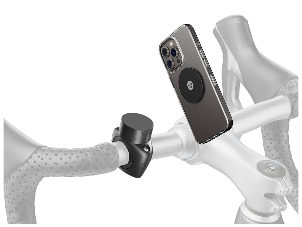 Šroubovací magnetický držák bez pouzdra na telefon pro použití na jízdním kole. Magnetický držák se upíná na řidítka nebo představec pomocí 2 šroubů a obejme řidítka o průměru až 31,8 mm