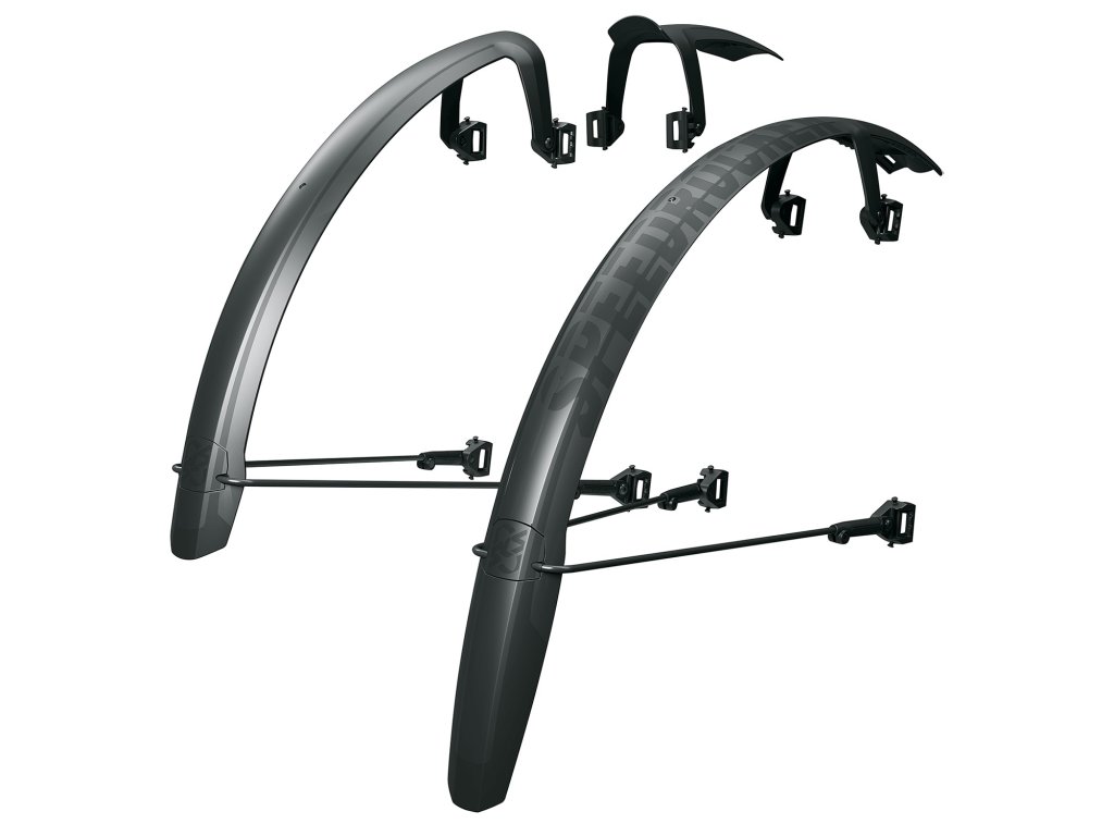 Sada blatníků SKS SPEEDROCKER XL z nárazuvzdorného vysoce odolného plastu je nyní k dispozici také pro pláště až do 52 mm. Zvláštností je funkce dvojitého spoileru na předním blatníku, který je upevněn pomocí pogumovaných suchých zipů. Zadní blatník také zajišťuje dokonalou ochranu proti stříkající vodě díky teleskopickému prodlužovacímu profilu a je upevněn na rámu pomocí pevných gumových pásků.