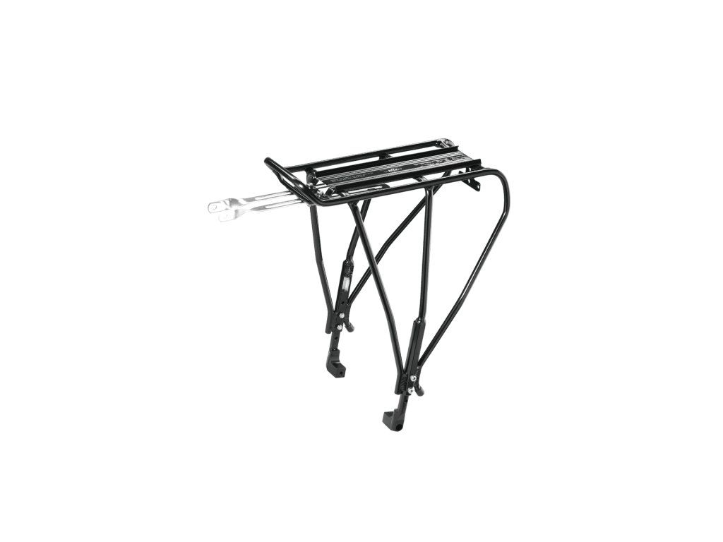 Tento univerzální hliníkový zadní nosič je vybaven nastavitelnými nohami, které jsou vhodné pro většinu MTB kol s koly 24" až 29" a cestovních kol 700C s kotoučovými brzdami.