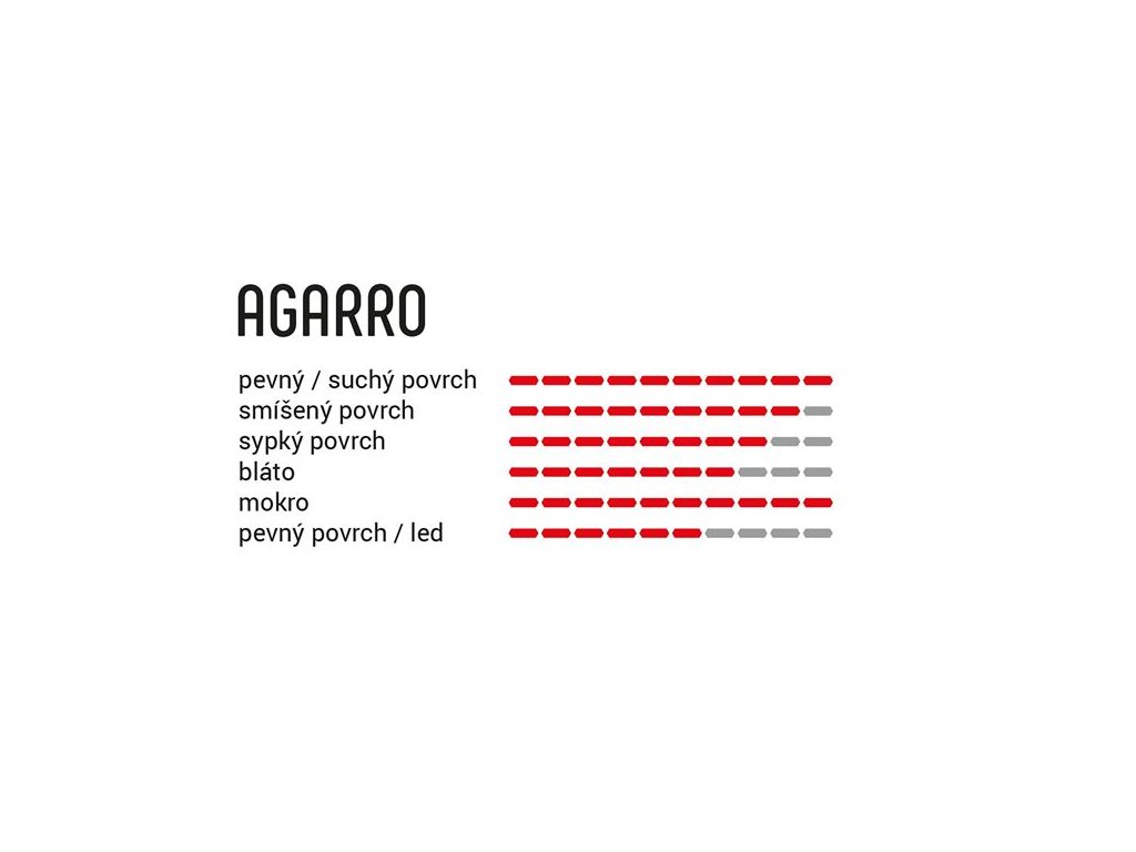 AGARRO Novinka pro rok 2020. Agesivnější vzorek než Barzo, ale rychlejší než Martello. Tento nový přírůstek do italské rodiny milovníků zdolávání nakloněných rovin je ideálním all mountain pláštěm, který je ale schopen se vypořádat i s lehkým endurem. Výborný v záběru, jistý v zatáčkách, spolehlivý při brzdění. Dost agresivní a odolný, přitom ale stále ještě slušně rychlý a s přijatelným valivým odporem. Samozřejmostí jsou čtyři směsi v jednom plášti a nový Grafen 2.0. Většina špuntů je opatřena více lamelami pro příkladnou adhezi na kořenech a kamenech. Bezdušová verze Konstrukce kordu a použití " TRAIL" , NYLON 120 TPI, zesílená bočnice proti proříznutí APF vložka proti průrazu u patky Kevlarová patka 4C- Čtyři směsi v jednom plášti Inovovaná Grafen 2.0 směs pro ještě vyšší odolnost, delší nájezd a maximální grip za mokra